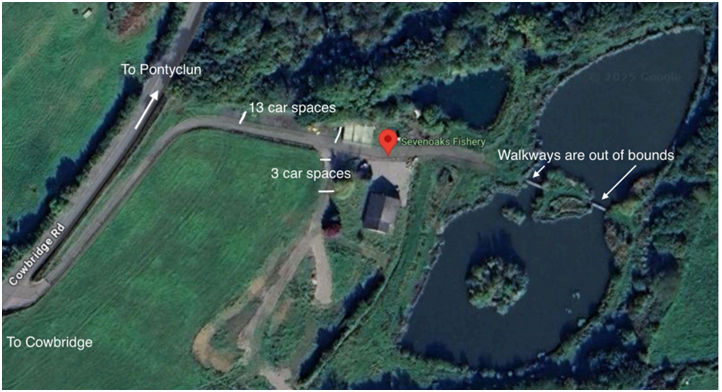 d) Parking is limited to 16 vehicles. Once the car parks are full there is no alternative parking and you must leave the fishery.